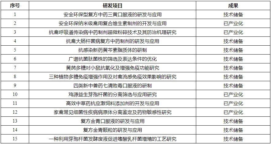 目前已完成的科研項目