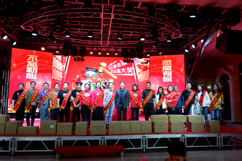 聯(lián)歡的同時進入了一年一度公司重頭戲——表彰環(huán)節(jié)。凱為過去一年的輝煌成就,離不開所有凱為人的辛勤付出。首先王總表彰了與凱為共同奮斗的十年、六年的忠誠衛(wèi)士,其次趙總表彰了各區(qū)域的銷售標兵及各部門的優(yōu)秀員工,你們是凱為的排頭兵,你們是凱為的中流砥柱,你們是最美凱為人!表彰形式花樣翻新,現(xiàn)金大紅包、歡樂砸金蛋、微信紅包雨........一份份禮品、一個個紅包、一次次表彰,都彰顯著凱為人披荊斬棘不負韶華的拼搏與奮斗!都書寫著凱為人實現(xiàn)愿景不辱使命的成就與輝煌?。?br />